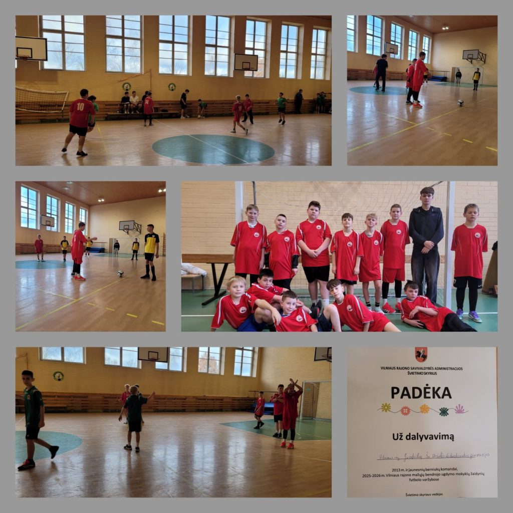 Lapkričio 18 d. Kalvelių „Aušros“ gimnazijoje vyko rajoninės futbolo varžybos, subūrusios 8 komandas iš Vilniaus rajono mokyklų. Nors prizinės vietos neiškovojome, stengėmės ir garbingai kovojome iki galo. Varžybos suteikė daug gerų emocijų ir vertingos patirties komandai.