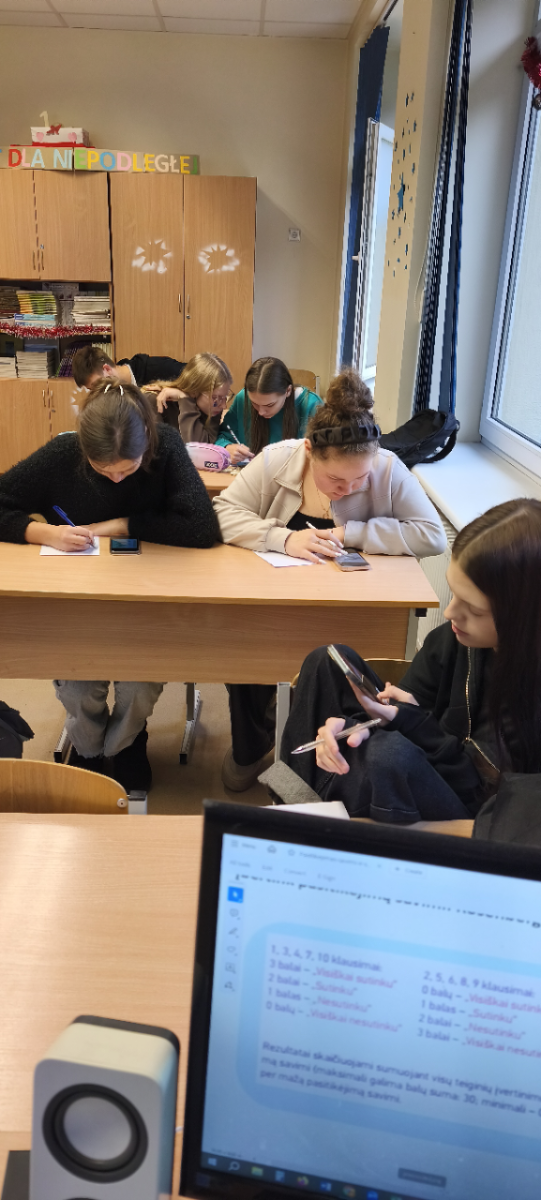 Šią savaitę gimnazijos mokiniams vyko psichologų užsiėmimai ir paskaitos. Kiekvienai 5–8 bei IG–IVG klasei psichologė N. Titova vedė užsiėmimus tema „Pasitikėjimo savimi ir savigarbos ugdymas“. Mokiniai atliko įvairias praktines užduotis ir psichologinius savęs pažinimo testus. Psichologė pateikė pavyzdžių, būdų ir praktinių patarimų, kaip stiprinti pasitikėjimą savimi, o mokiniai buvo kviečiami atpažinti savo stiprybes bei suprasti, kaip kasdieniai įpročiai ir mintys formuoja savivertę.