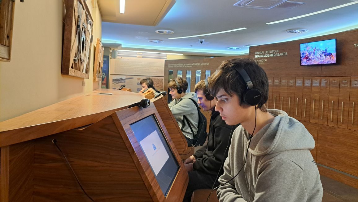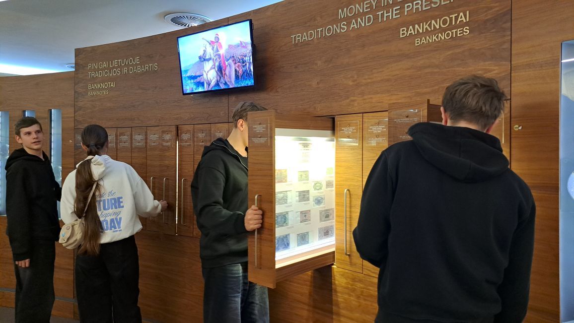 Vėliau vykome į edukaciją „Eurų gyvavimo ratas“ Lietuvos Pinigų Muziejuje. Mokiniai susipažino su eurų banknotų ir monetų apsaugos priemonėmis, sužinojo, kur spausdinami banknotai ir, kur kaldinamos monetos, kuo skiriasi Eurozonos šalių monetos, kas atsako už pinigų kiekį rinkoje, ką veikia grynųjų pinigų ekspertai.
