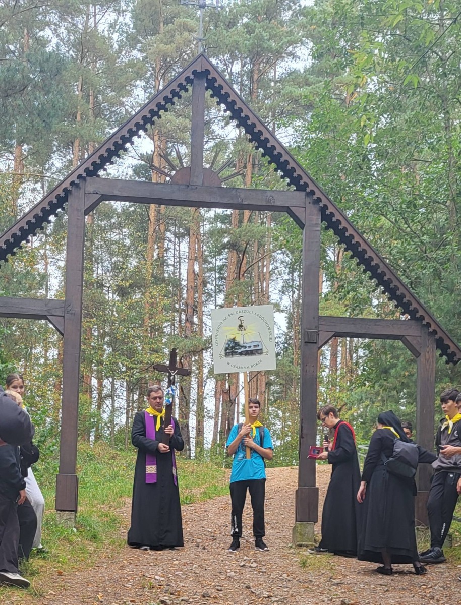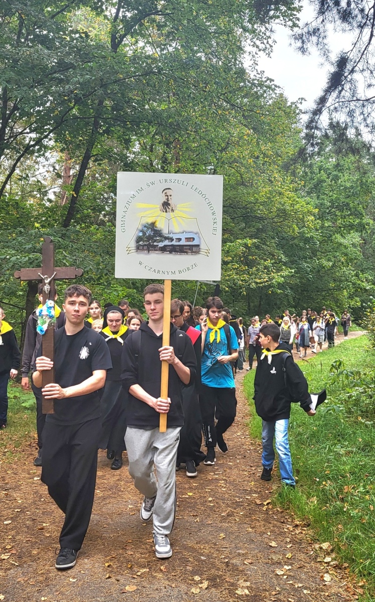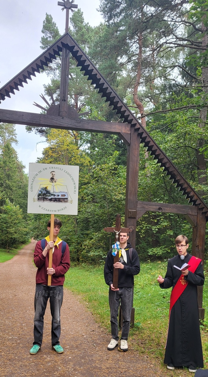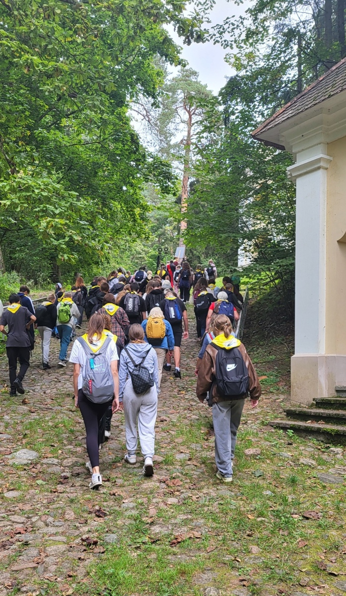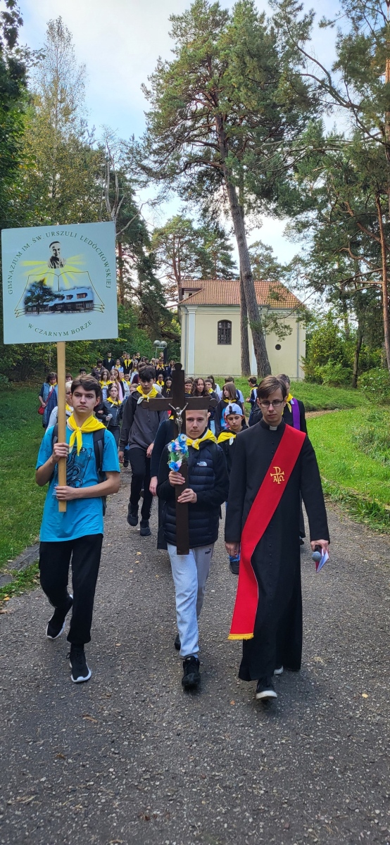 Dla chrześcijan bardzo ważnym nabożeństwem jest rozważanie Męki Pańskiej, potocznie nazywane Drogą Krzyżową. Tradycyjnie posiada ono 14 stacji, jednak są miejsca szczególne, w których nabożeństwo to jest znacznie dłuższe. Takim miejscem jest Kalwaria Wileńska, składająca się z 35 stacji rozłożonych na ok. 7 km drogi. 22 września nasze gimnazjum po raz drugi wyruszyło na kalwaryjski szlak. Ponad 60 uczniów z klas od 6 do IVG wraz z nauczycielami przeżywało to wyjątkowe nabożeństwo. W tym roku rozważania przygotował i poprowadził ks. dk. Tomasz Jundo, który w prostych, a zarazem głębokich słowach przybliżał nie tylko prawdy wiary, ale także zachęcał do żywej i osobistej relacji z Panem Jezusem. Cieszymy się, że towarzyszył nam również ks. Andrzej Szuszkiewicz, rektor kościoła bł. ks. Michała Sopoćki w Czarnym Borze. Tym bardziej jesteśmy wdzięczni, że wśród wielu ważnych obowiązków znalazł czas na wspólną modlitwę.