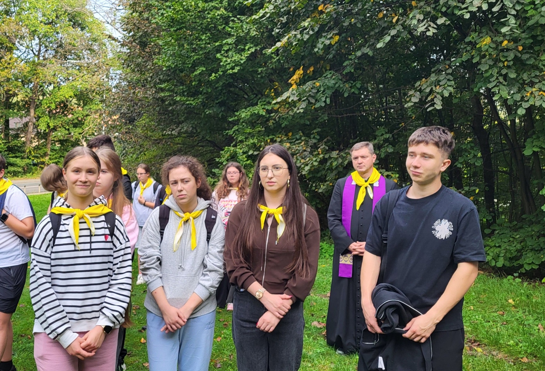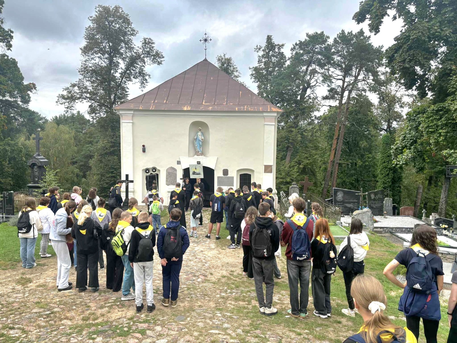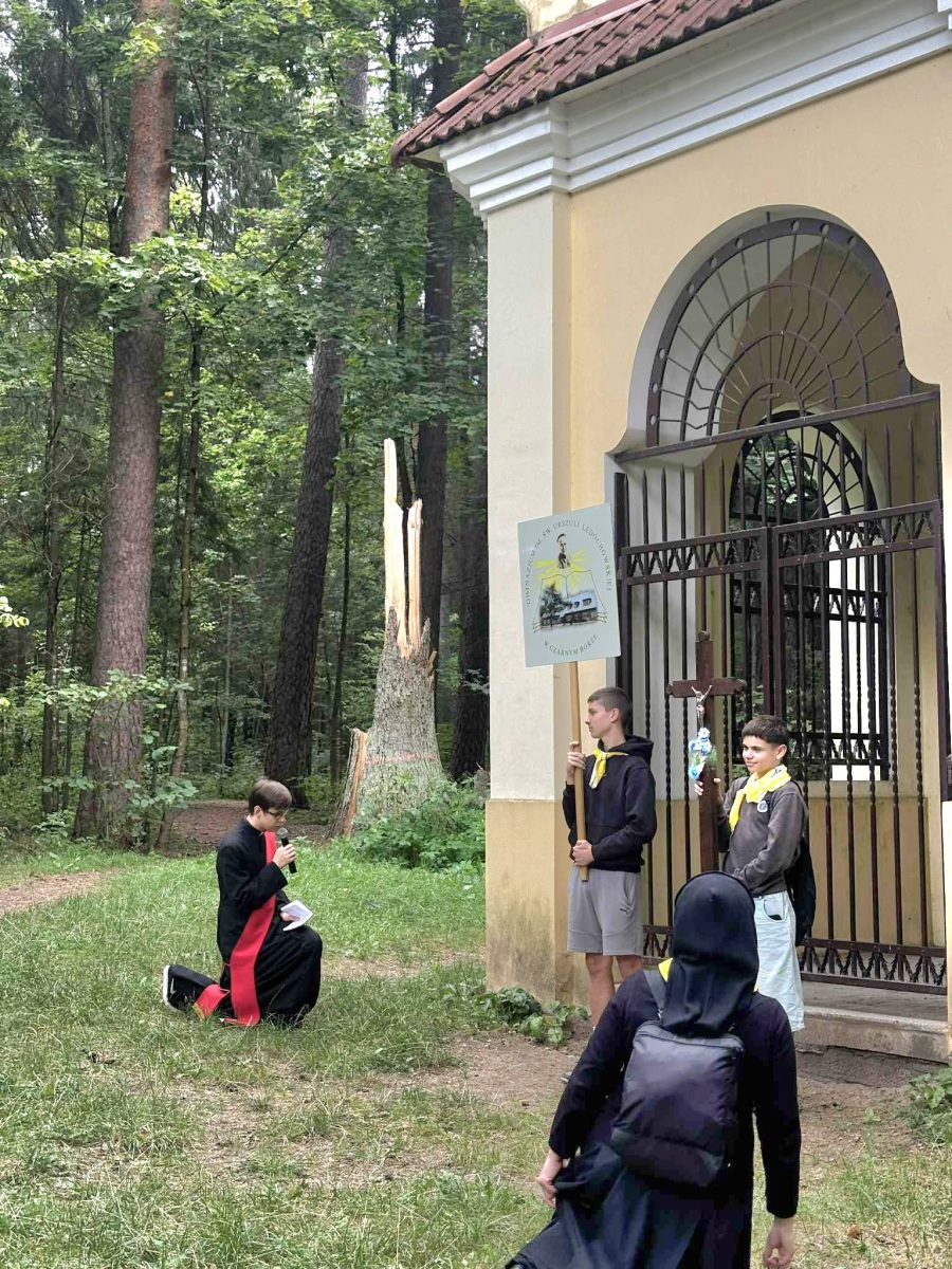 Dla chrześcijan bardzo ważnym nabożeństwem jest rozważanie Męki Pańskiej, potocznie nazywane Drogą Krzyżową. Tradycyjnie posiada ono 14 stacji, jednak są miejsca szczególne, w których nabożeństwo to jest znacznie dłuższe. Takim miejscem jest Kalwaria Wileńska, składająca się z 35 stacji rozłożonych na ok. 7 km drogi. 22 września nasze gimnazjum po raz drugi wyruszyło na kalwaryjski szlak. Ponad 60 uczniów z klas od 6 do IVG wraz z nauczycielami przeżywało to wyjątkowe nabożeństwo. W tym roku rozważania przygotował i poprowadził ks. dk. Tomasz Jundo, który w prostych, a zarazem głębokich słowach przybliżał nie tylko prawdy wiary, ale także zachęcał do żywej i osobistej relacji z Panem Jezusem. Cieszymy się, że towarzyszył nam również ks. Andrzej Szuszkiewicz, rektor kościoła bł. ks. Michała Sopoćki w Czarnym Borze. Tym bardziej jesteśmy wdzięczni, że wśród wielu ważnych obowiązków znalazł czas na wspólną modlitwę.