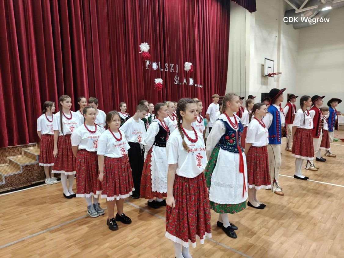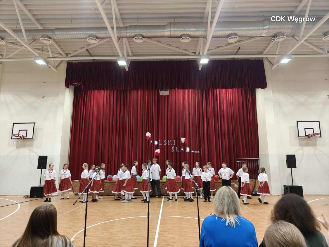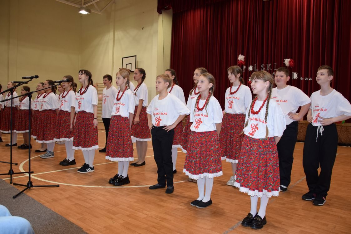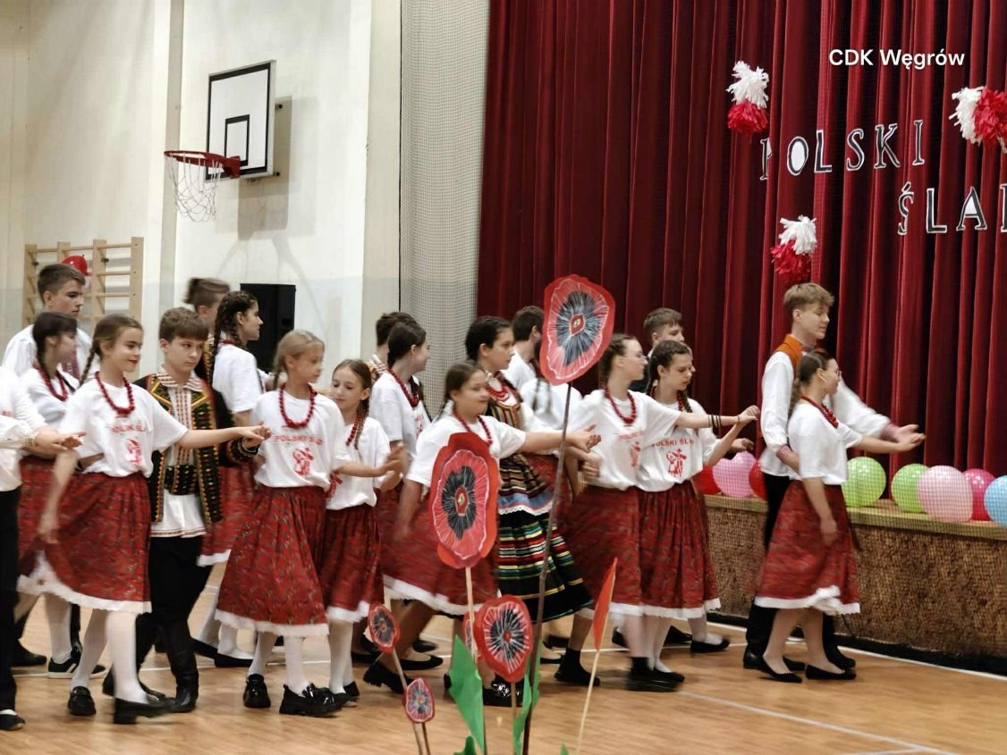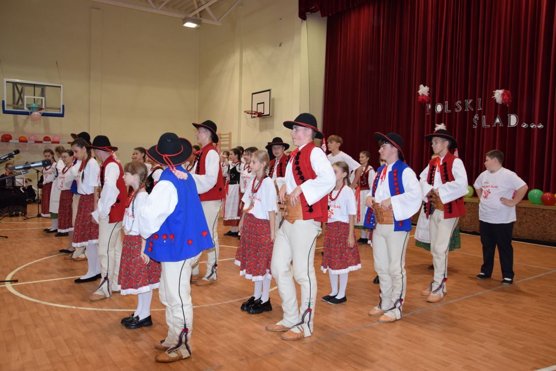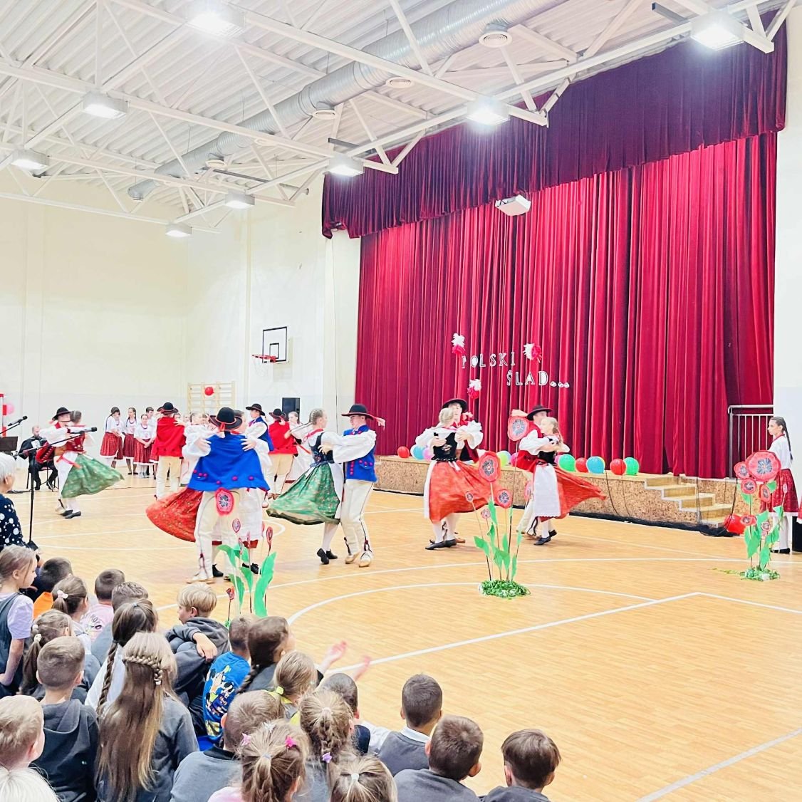 Na scenie – w sali gimnastycznej przemienionej w prawdziwą salę widowiskową – zaprezentowali się zarówno uczniowie, jak i artyści z zespołu. Kolorowe stroje ludowe, żywa muzyka i radosne tańce stworzyły niepowtarzalną atmosferę. Publiczność mogła podziwiać zarówno tradycyjne polskie układy taneczne, jak i wspólne występy, w których widać było ogromne zaangażowanie młodzieży.