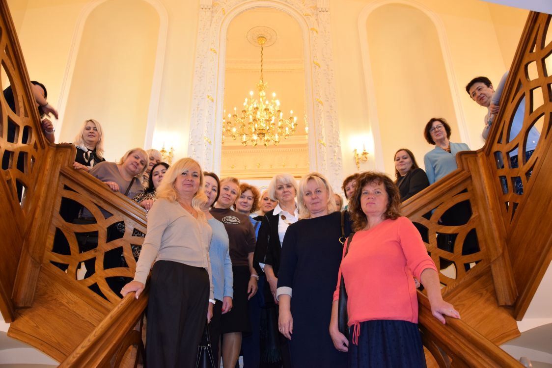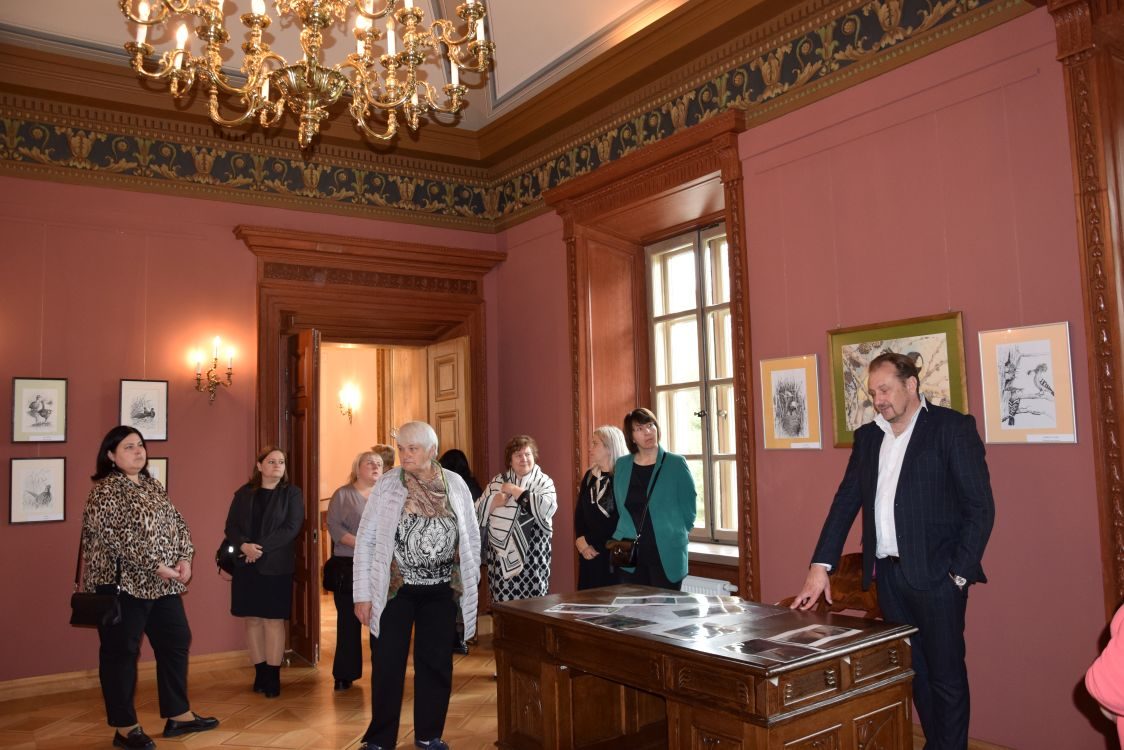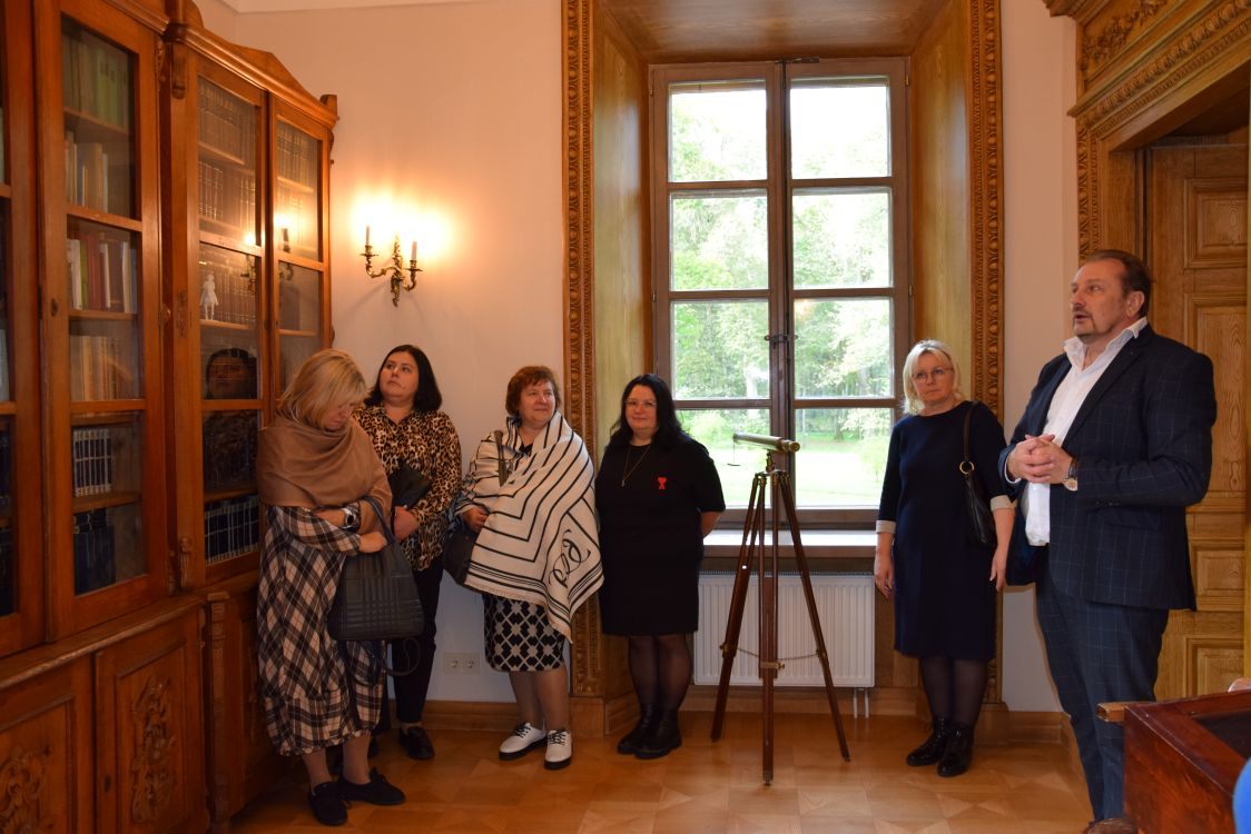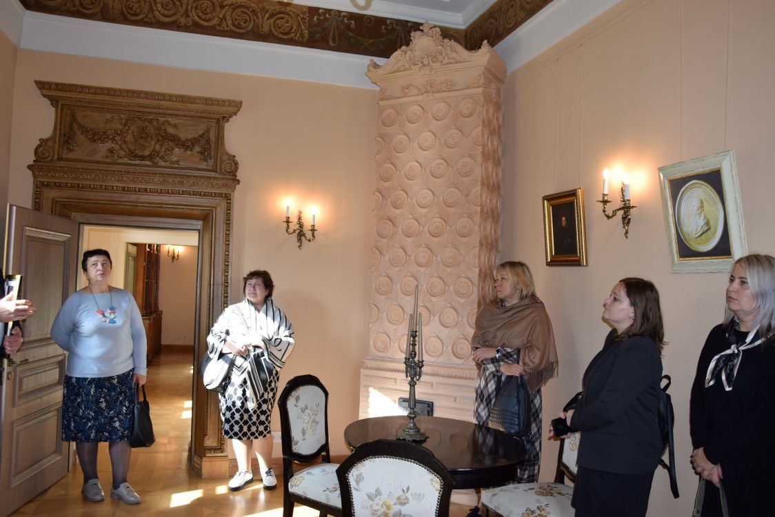 Po uroczystym i pysznym obiedzie nauczyciele wyruszyli do Pałacu Balińskich w Jaszunach. Tam czekała na nas niezwykle interesująca wycieczka z przewodnikiem, który z zaangażowaniem i pasją opowiadał o historii pałacu oraz jego współczesnej działalności jako muzeum.