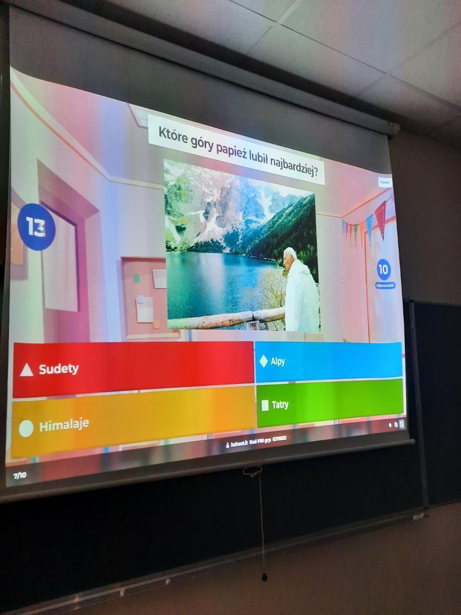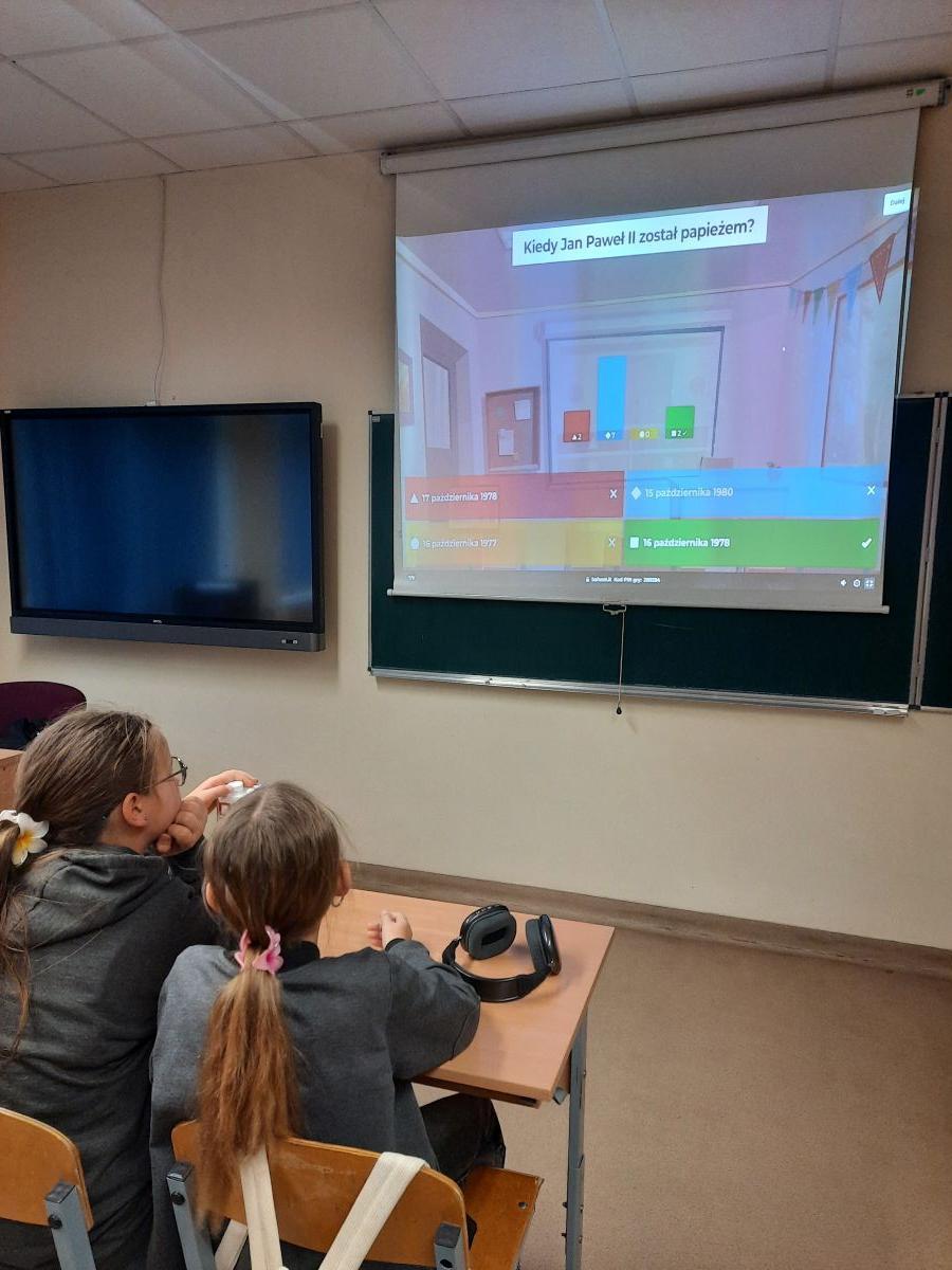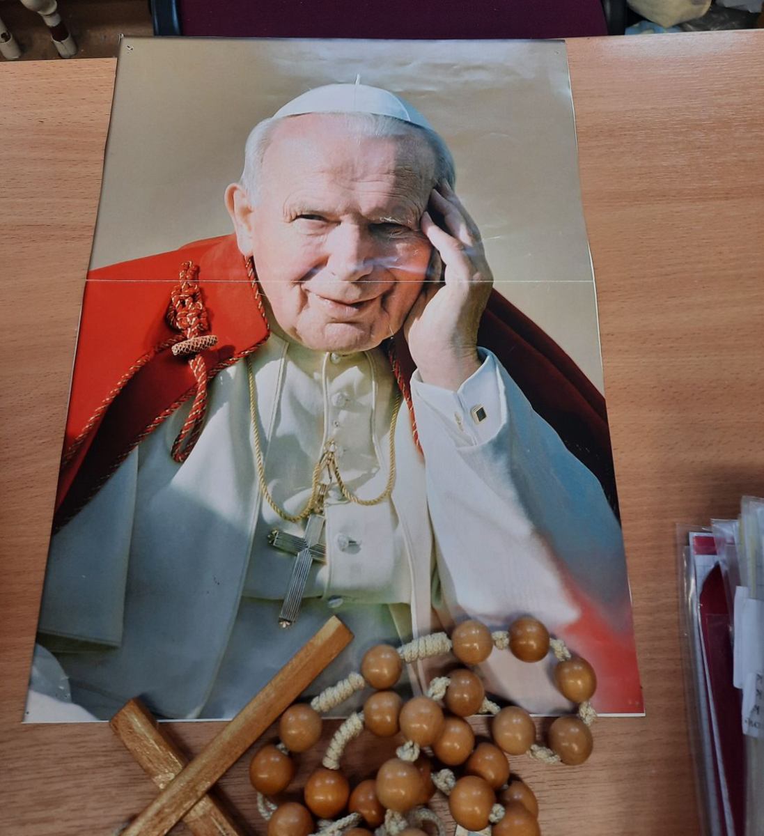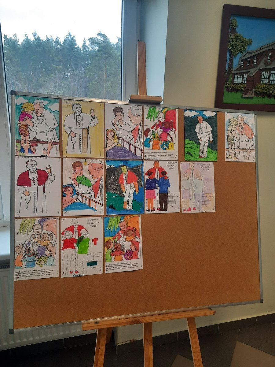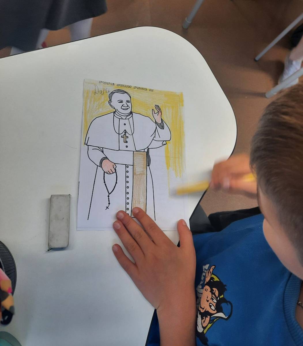 22 października obchodzimy liturgiczne wspomnienie św. Jana Pawła II, dlatego w naszym Gimnazjum w ramach lekcji religii uczniowie poznali postać tego Świętego. I starsi i młodsi zapoznali się z jego życiem poprzez opowiadania, quizy, gry a na pamiątkę kolorowanka, pokolorowana przez uczniów II kl. Na pewno życie, nauczanie i wstawiennictwo u Boga tego wielkiego Świętego to źródełko, z którego choć czasem zaczerpnijmy dla siebie i innych.