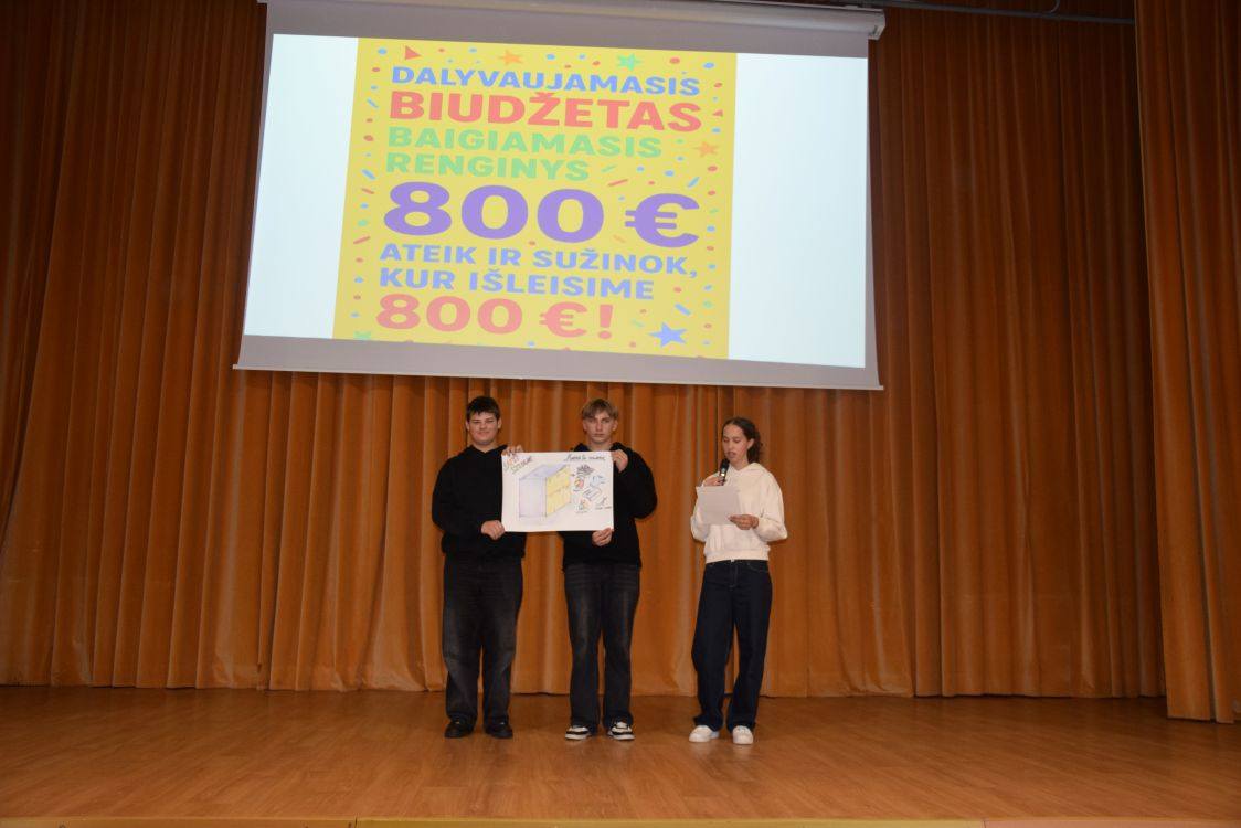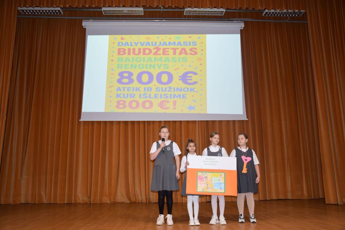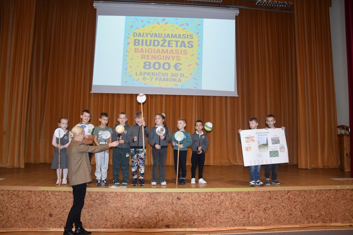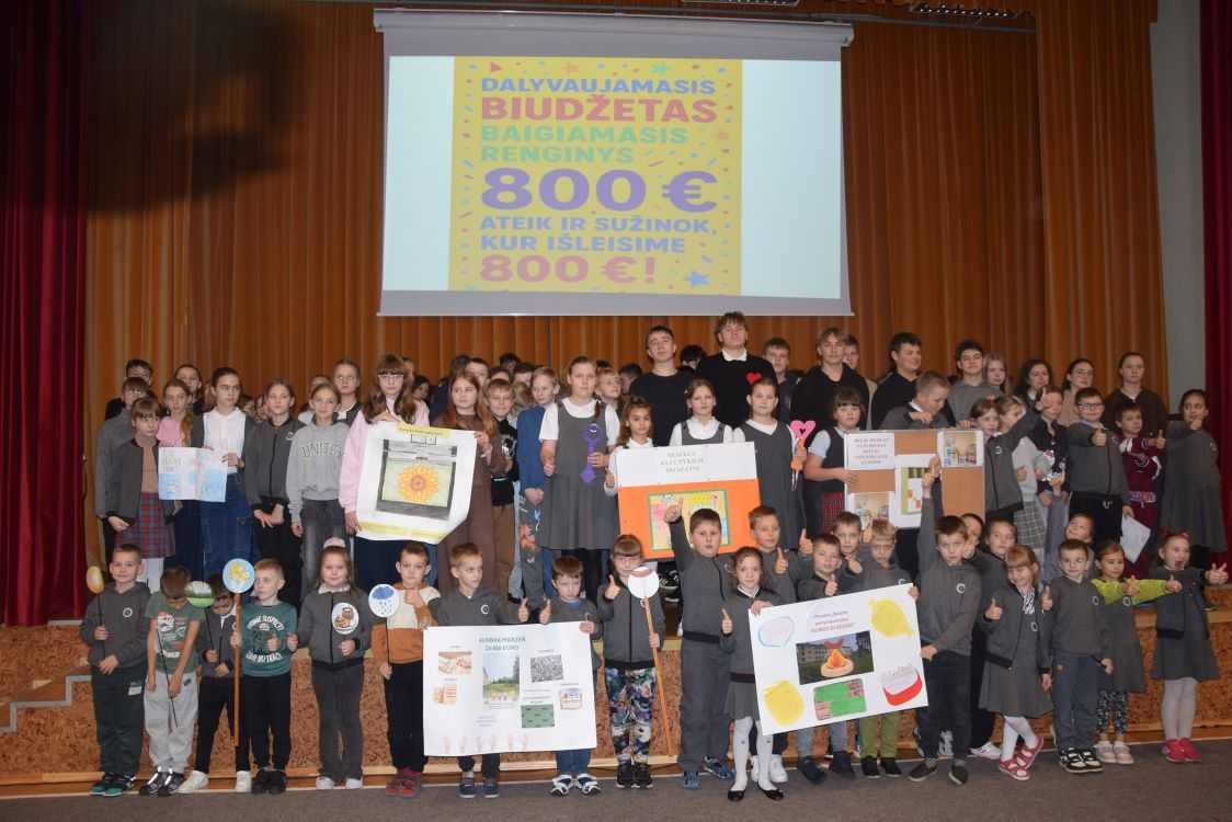 30 października w auli szkolnej odbyło się wydarzenie podsumowujące projekt. Na jego początku dyrektor gimnazjum, Ligija Kożenevska, przedstawiła budżet szkoły, omawiając źródła jego finansowania oraz kierunki wydatków. Następnie przedstawiciele każdej klasy zaprezentowali swoje pomysły, zachęcając społeczność do ich poparcia.