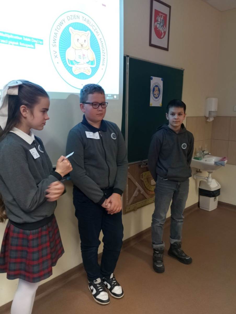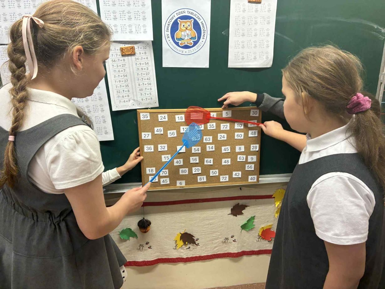 Po raz trzeci w naszym gimnazjum odbył się Światowy Dzień Tabliczki Mnożenia. Od 17 listopada każdego dnia odbywała się gra polegająca na podaniu hasła i odzewu, a także na powtarzaniu tabliczki mnożenia. W piątek 21 listopada grupa przedszkolna kolorowała wybrane rysunki z sową, a uczniowie klas 3-4 sprawdzali swoją wiedzę z tabliczki mnożenia wspólnie, w formie zabawy. Natomiast przedstawiciele klasy 5 egzaminowani swoich kolegów z klasy, chętnych uczniów ze starszych klas, a także nauczycieli i pracowników gimnazjum. Każdy, kto bezbłędnie wykonał zadanie, otrzymał miano „Eksperta tabliczki mnożenia”. Piątoklasiści byli bardzo dumni z siebie, że udało im się pokonać barierę strachu i sprawdzić wiedzę starszych uczniów i nauczycieli.