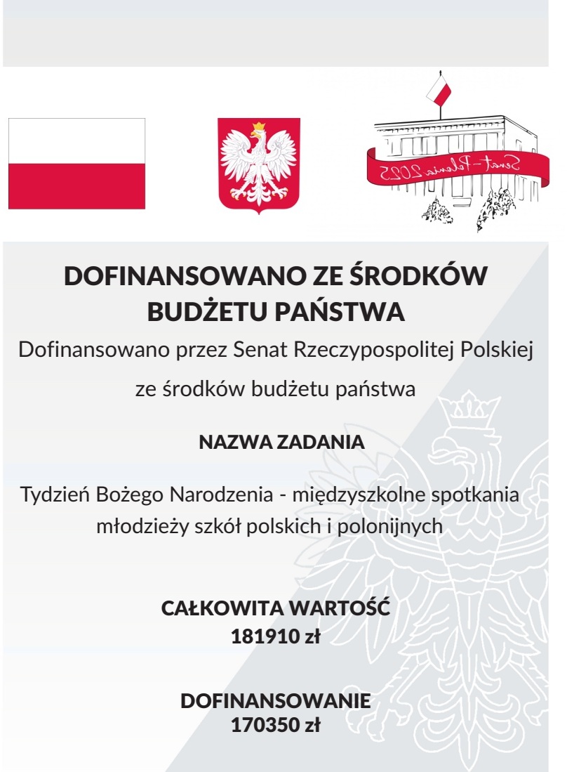 Projekt „Tydzień Bożego Narodzenie“ jest współfinansowany ze środków Senatu Rzeczypospolitej Polskiej ze środków budżetu państwa w ramach Konkursu „Senat – Polonia 2025″.