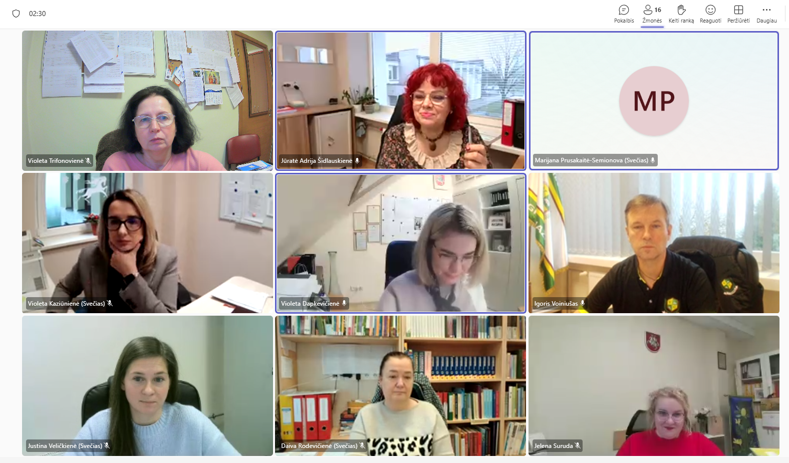 18 grudnia 2025 r. odbyło się zdalne robocze spotkanie szkół, podczas którego przedstawiciele placówek oświatowych z rejonu wileńskiego dzielili się dobrymi praktykami w zakresie edukacji włączającej. Nasze gimnazjum reprezentowały: dyrektor szkoły Ligia Korzeniewska, zastępca dyrektora ds. nauczania Violeta Trifonovienė oraz psycholog Krystyna Pasevičė.